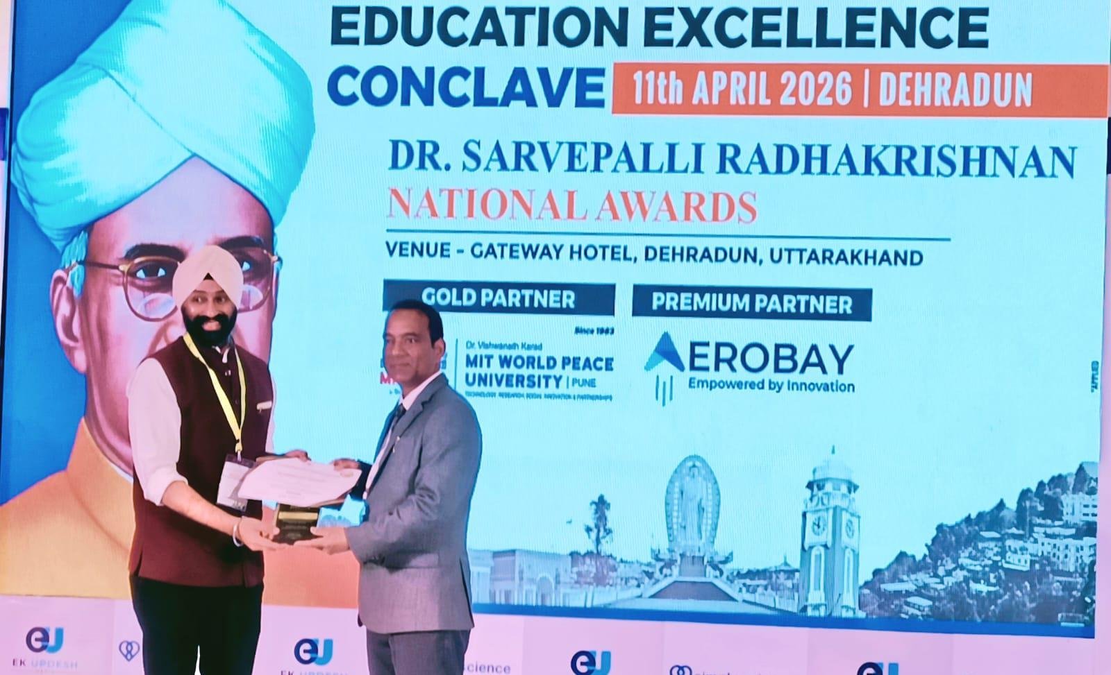 देहरादून : देहरादून में 12 अप्रैल 2026 को आयोजित एजुकेशन एक्सीलेंस कॉन्क्लेव के दौरान आर्मी पब्लिक स्कूल लैंसडाउन के प्रधानाचार्य विजेन्द्र दत्त सुंदरियाल को डॉ. सर्वपल्ली राधाकृष्णन नेशनल प्रिंसिपल अवार्ड 2026 से सम्मानित किया गया। यह सम्मान उन्हें शिक्षा के क्षेत्र में पिछले 25 वर्षों से दी जा रही उनकी समर्पित एवं उत्कृष्ट सेवाओं के लिए प्रदान किया गया।